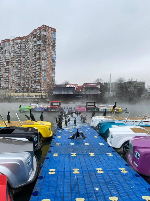 Бакланы могут периодически появляться здесь, но основное их место гнездования – Восточное Приазовье, Крым, Темрюк, Азовские лиманы, Анапа. Скопление на острове – это явление сезонное, связанное с зимовкой или остановкой во время кочевок. Когда лед сходит с привычных для них водоемов, большинство птиц возвращается в родные места.