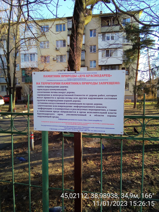 Наименование ООПТ: памятник природы «Дуб Краснодарец»
