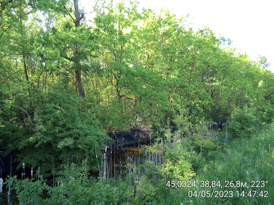 Общее описание: Территория ООПТ расположена на высокой пойме реки Кубань, относительные превышения которой над руслом реки не превышают 2-3 м. Абсолютные отметки составляют 17-18 м над уровнем моря. На территории лесопарка расположены искусственные посадки, в прирусловой части произрастают ивы и тополя. Вокруг затона и на острове водная растительность представлена преимущественно тростником южным. Cмешанные дубовые леса занимают большую часть ООПТ лесопокрытой площади. Широкое распространение на обследованной территории имеют ассоциации формации дуба черешчатого (Quercus robur L).
